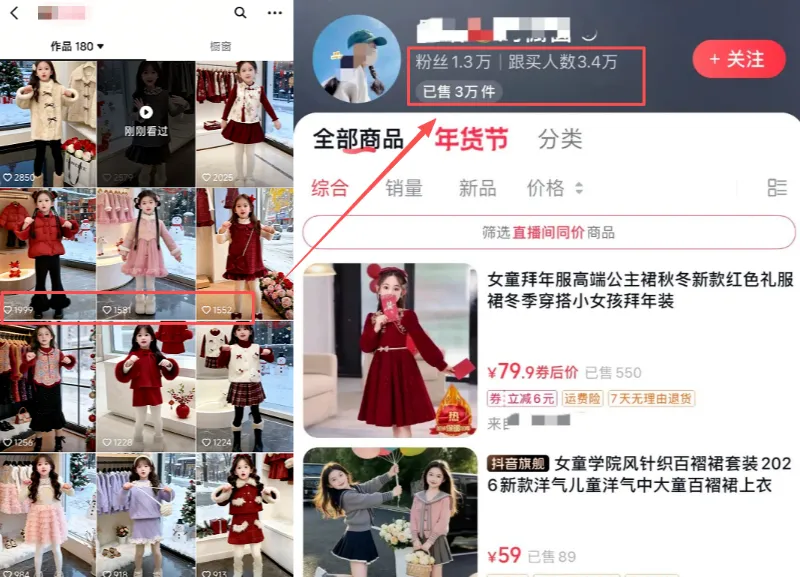 这类带货视频的常见形式,是AI儿童模特搭配童装跳舞展示,核心靠批量发布视频实现出单,目前单账号单次卖出几千件的案例非常多,变现实力不容小看。