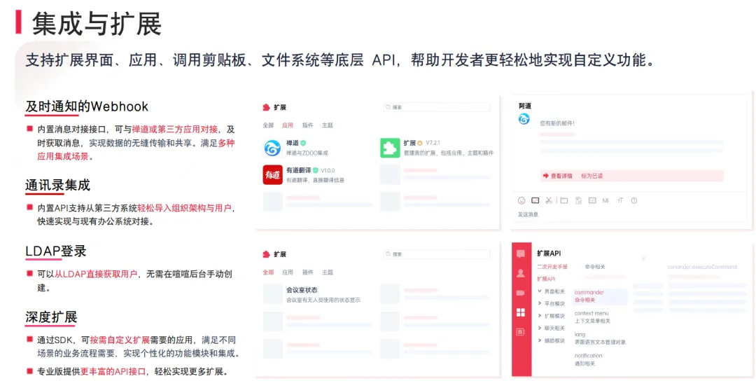 深度集成能力可以打破企业信息孤岛。喧喧不做封闭的 IM 工具,而是打造企业各类系统的集成中枢。产品与禅道项目管理软件天然适配,研发团队可以实时同步 Bug 任务与需求信息。通过扩展插件,企业能将 ERP OA CRM 以及工业监控系统集成到产品中,员工在单一界面就能完成全部业务操作,告别多系统切换的低效办公状态。