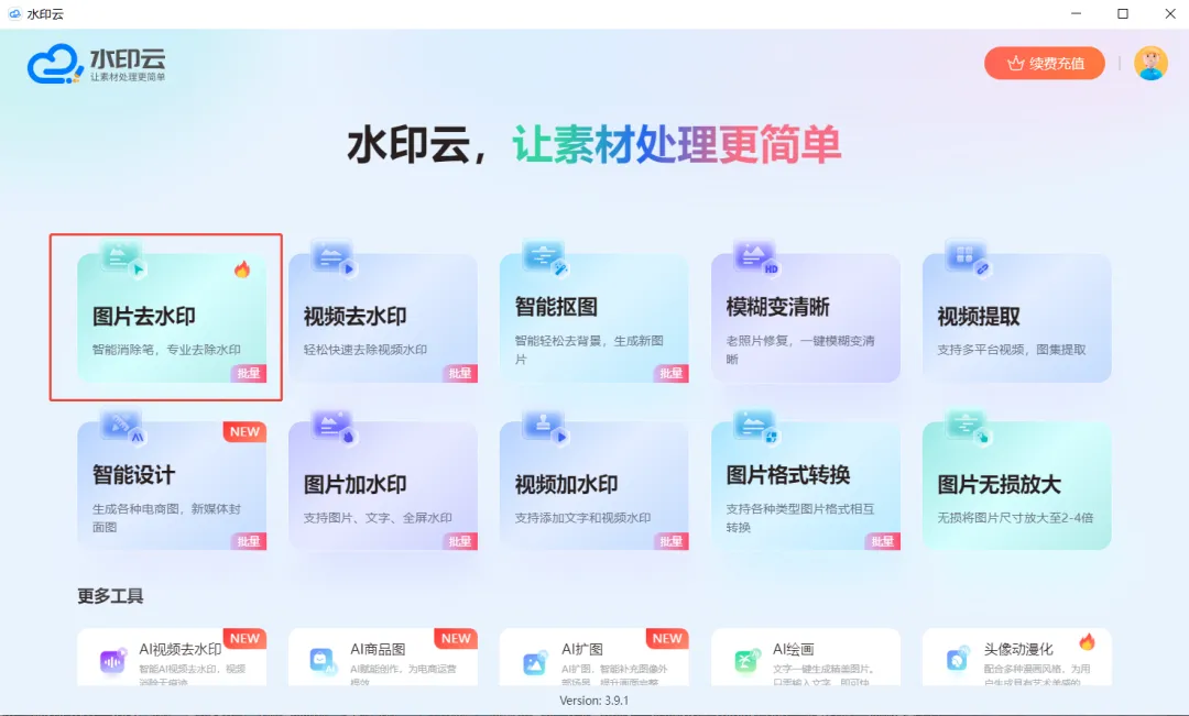 适用场景:自媒体批量素材处理、电商产品图优化、高清照片修复、职场办公素材复用、长期高频去水印需求