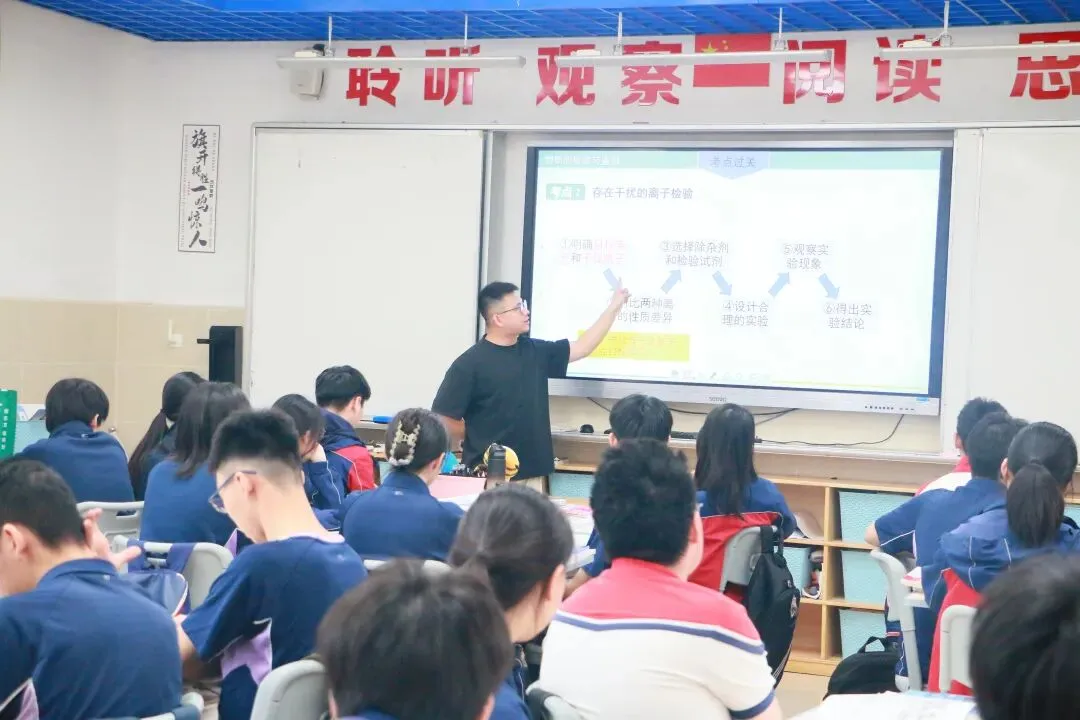 碧桂实验化学老师叶志豪带来的《试剂为钥,现象为证:物质检验与鉴别深度解析》一课,充分展现了化学课堂的理性魅力与探究乐趣。课堂紧扣“一种离子的鉴别”与“存在干扰的离子检验”两大核心考点,以流程化思维引导学生掌握离子检验的系统方法。叶老师将抽象的化学原理转化为可操作、可验证的实践路径,有效提升了学生的科学探究能力与逻辑思维品质。