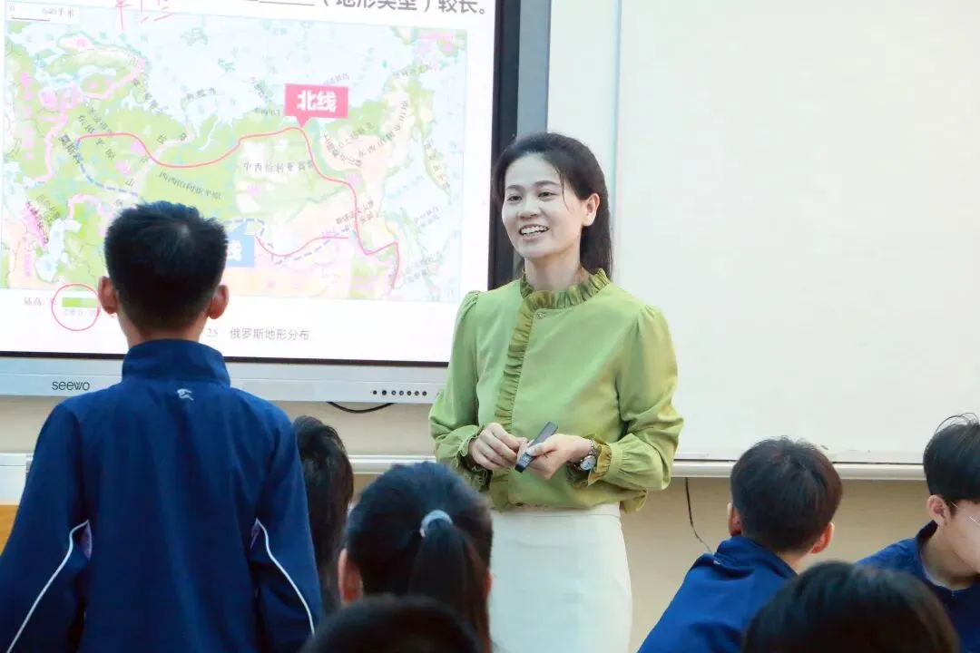 地理公开课上,凤凰城中英文学校赵同君老师带来《俄罗斯》一课。赵老师以“西伯利亚大铁路规划师日志:南北抉择”为主题创设情境任务,引导学生化身铁路规划师,在真实问题中展开探究。在任务驱动下,同学们通过对比南北线路的地形、气候、资源、人口等要素,理解自然环境对铁路选址的制约与影响。课堂最后,同学们以小组合作形式,完成铁路选线的论证与决策,实现从知识理解到问题解决的能力跃迁。