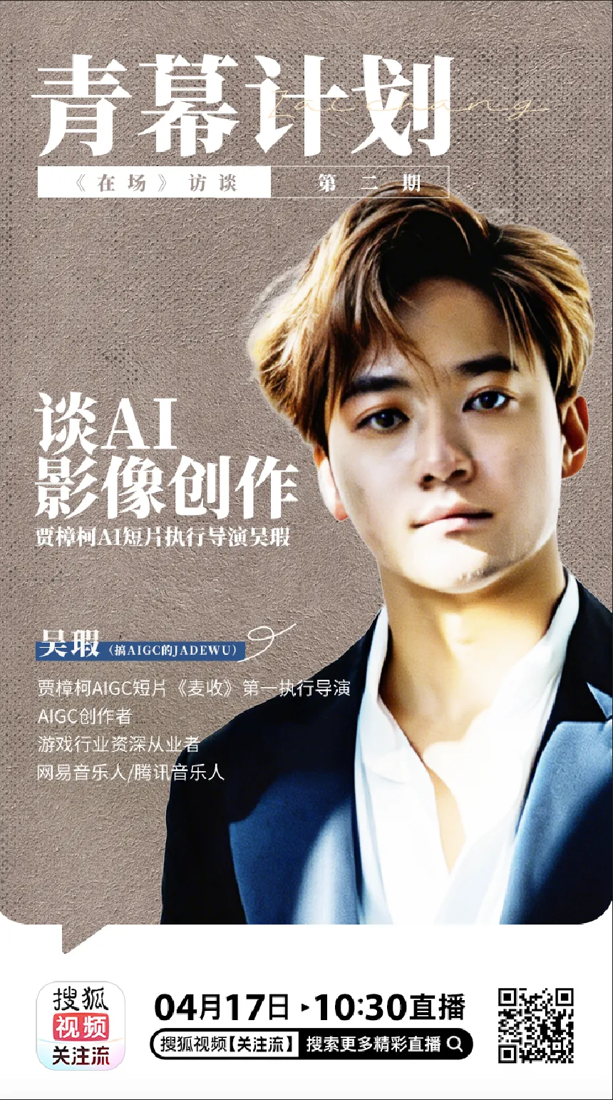 4月17日,搜狐青幕计划重磅邀约,吴瑕(搞AIGC的JadeWU)做客《在场》访谈直播间!
