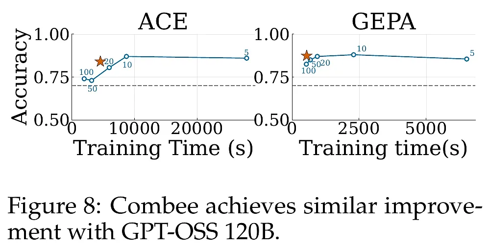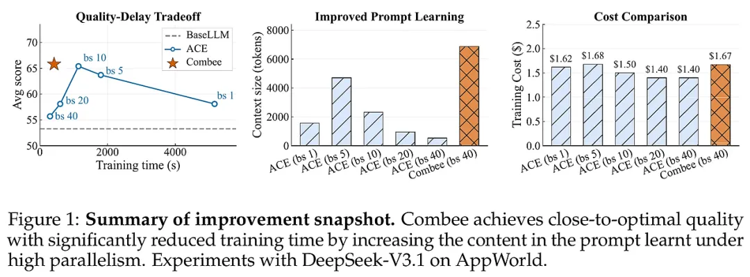 4. 框架无关的普适性 Combee 的设计极具前瞻性,它不绑定于特定的智能体架构。无论是基于策略积累的 ACE,还是基于进化算法的 GEPA,都可以无缝集成 Combee。这种“即插即用”的特性,使其成为了大规模智能体学习的基础设施级增强方案。