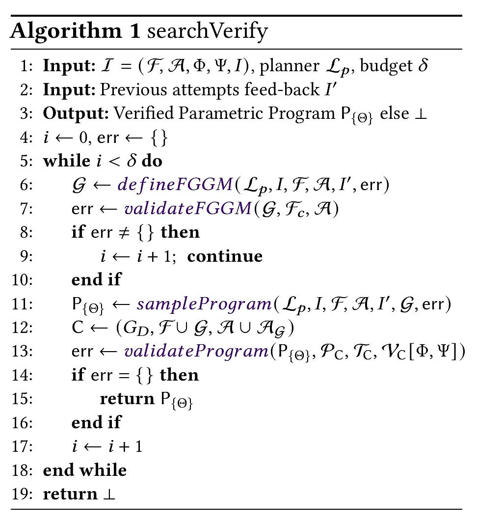 1. 形式化守护生成模型(FGGM):逻辑的“过滤器”与“安全网” SEVerA 引入了形式化守护生成模型(Formally Guarded Generative Models, FGGM),这是其最核心的创新。在传统的智能体程序中,LLM 的调用是不可控的;而在 FGGM 机制下,每一个生成模型的调用都被包裹在一个基于一阶逻辑(First-Order Logic)的“本地契约”中。