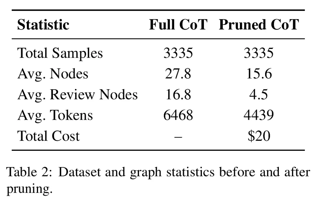 分支级剪枝(Branch-Level Pruning):针对“无差别反思”。如果一个反思节点产生的子孙节点极少(低于阈值k),说明它开启的是一个无法深入的“死胡同”分支,对最终解题贡献微乎其微。通过剪掉这些弱贡献分支,模型能够专注于主干逻辑。 深度级剪枝(Depth-Level Pruning):针对“重复性反思”。研究发现,当推理进入后期,模型往往会陷入自我怀疑的循环。如果反思节点出现在推理轨迹的末端(相对深度超过阈值m),通常只是在重复验证已知结论。剪除这些后期冗余,能显著缩短推理路径。