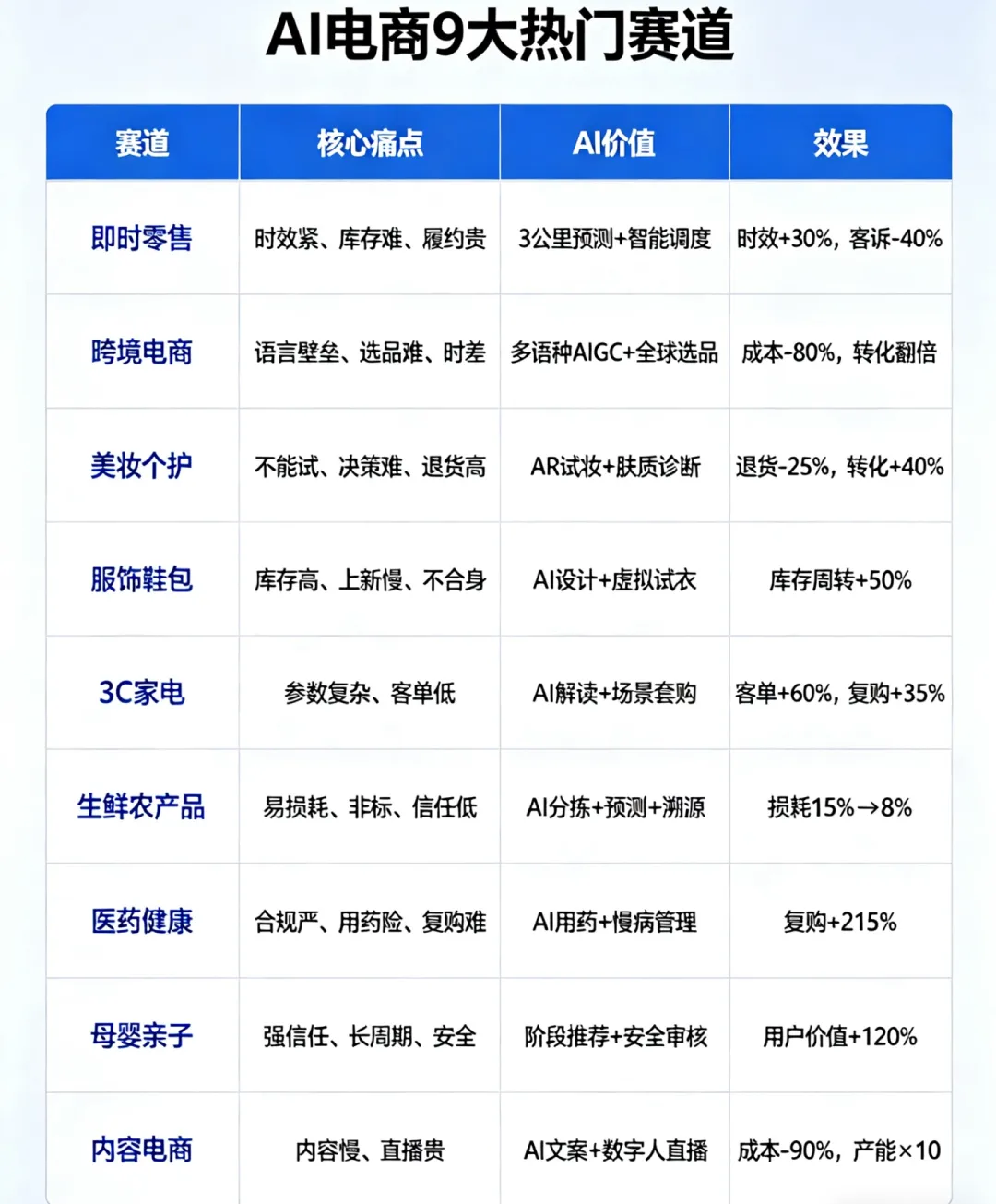 AI电商并非空泛的概念。它正在高需求、高痛点的垂直行业深度落地,形成了明确的红利窗口。