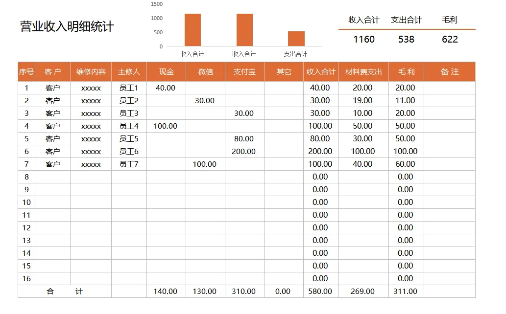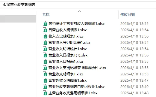 ……好了,有关这里常用的营业收支明细表模板,内设公式,自动统计,财务人员可以编辑修改套用。