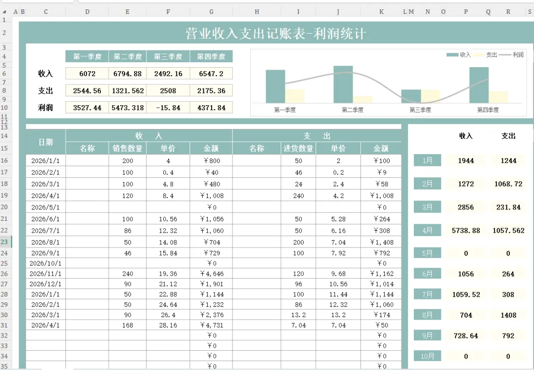 财务收藏备用:营业收支明细表模板,内设公式,自动统计,可编辑修改!