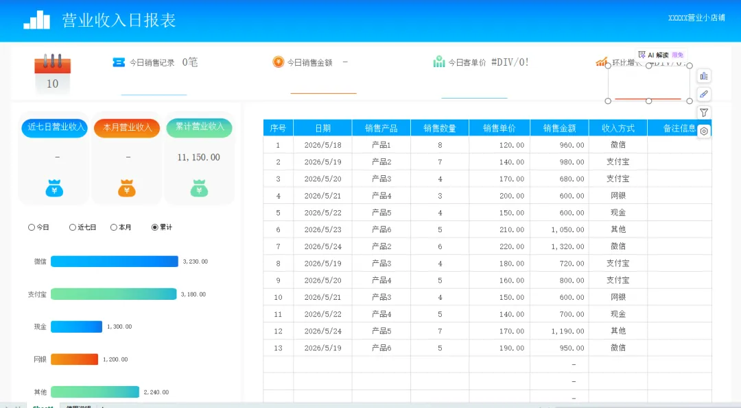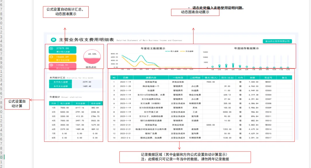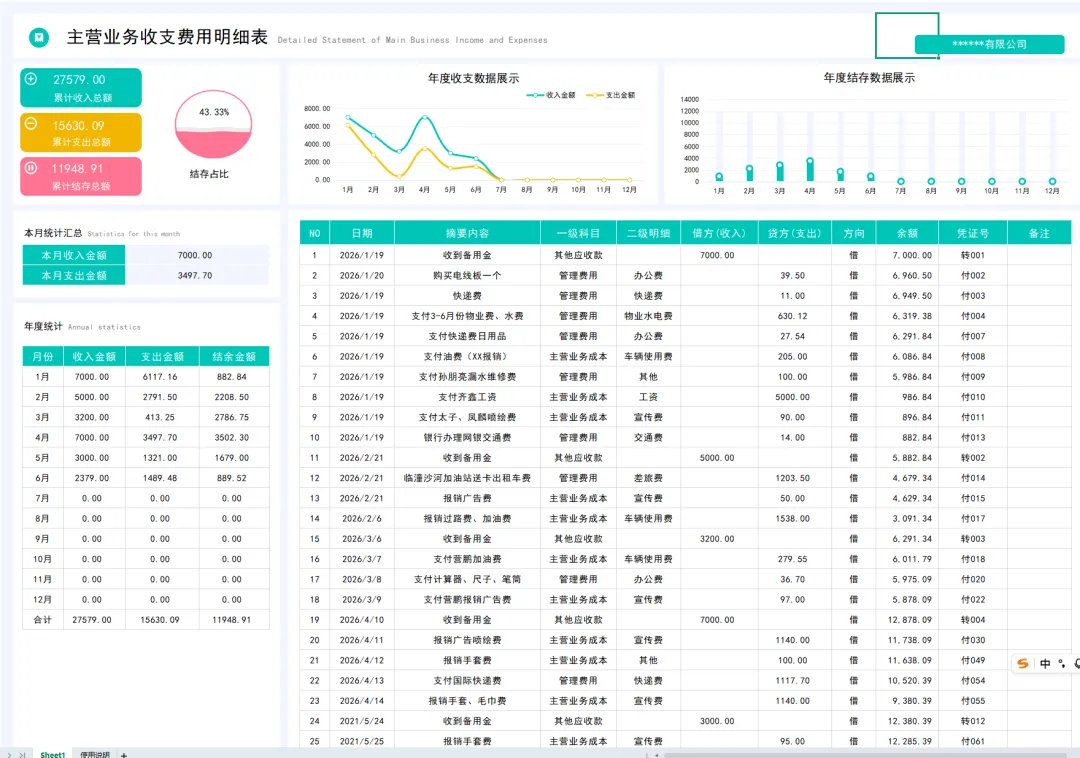 财务人员日常做财务数据分析做的财务分析表格,都是流水账的,可以看看今天小帮手带来的这套营业收支明细表模板,可视化财务数据分析展示,套用操作简单。