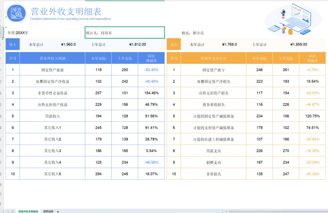 营业收支明细表模板(带公式)