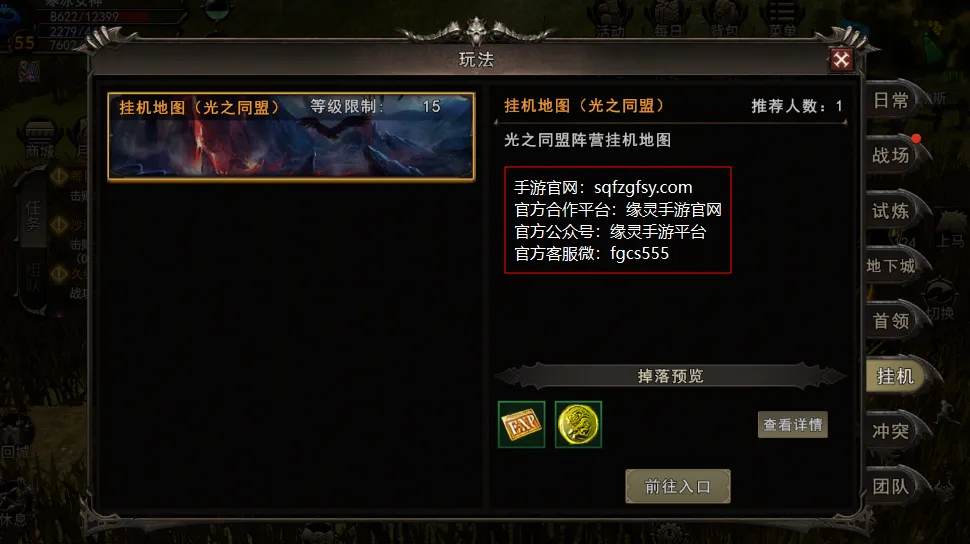 阵营玩法、战术搭配、职业配合有疑问,联系官方客服:fgcs555获取专属指导;关注官方授权平台:缘灵手游官网(ylsygw.com)与官方订阅号:缘灵手游平台,获取阵营对抗战术、指挥教程、奖励大全,带领阵营称霸全服!