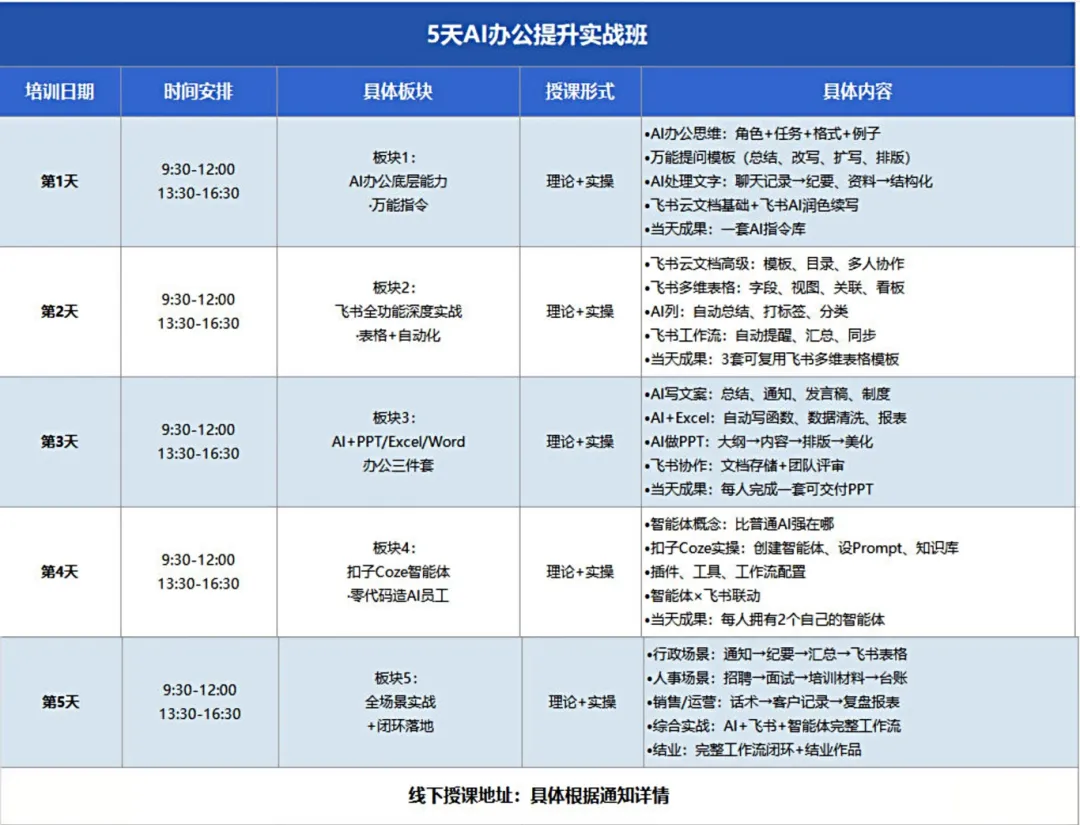 课次及学习方式:线上网课+线下5天