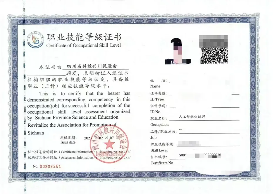 我们人工智能训练师课程考取的是《人工智能训练师职业技能等级证书》。