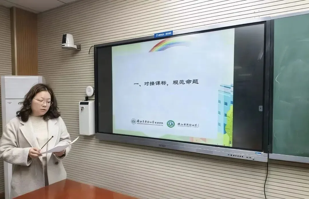 束秀萍、李秀君、蒋燕三位教师代表各自集团,聚焦期末命题进行分享与反思。三位老师从核心素养出发,剖析命题亮点与不足,提出优化结构、强化语境、提升思维等建议,践行“以考促教、以评促学”。