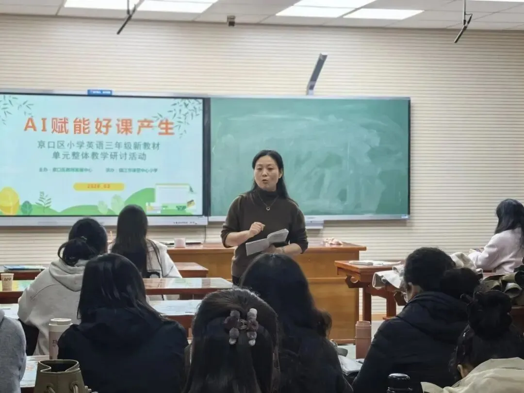 3月30日下午,京口区小学英语三年级新教材单元整体教学研讨活动在镇江市谏壁中心小学成功举行。全区三年级英语教师齐聚一堂,以省级重点课题《“平行课程”赋能小学英语新教材的实践样态研究》为引领,真实的课例为切口,深度的研讨为引擎,共同探寻AI赋能下英语教学的创新路径。