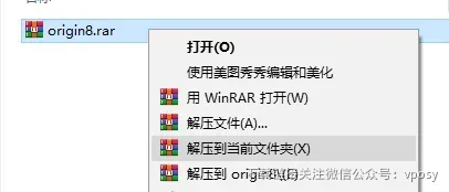 1、把资源从网盘下载到电脑上面,右键压缩包选择解压到当前文件夹。(不会从网盘下载的建议参考Vposy公众号文章:“如何下载打开资源”)。