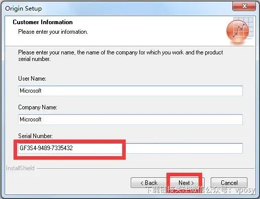 7、任意输入用户名、公司名称,注册码输入GF3S4-9489-7335432,然后点击“Next”。