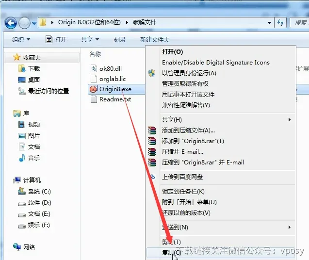 20、复制【origin8.exe】文件。