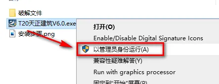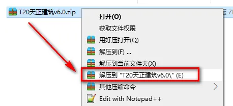 注:天正6.0支持CAD版本: 64位系统支持:CAD2010-2020 32位系统支持:CAD2010-2020(2017版本除外) 1.鼠标右键解压到“T20天正建筑v6.0” ![]() 2.找到并选中T20天正建筑V6.0,鼠标右键选择“以管理员身份运行”