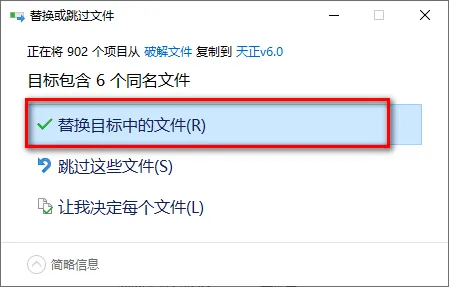 14.点击“替换目标中的文件”