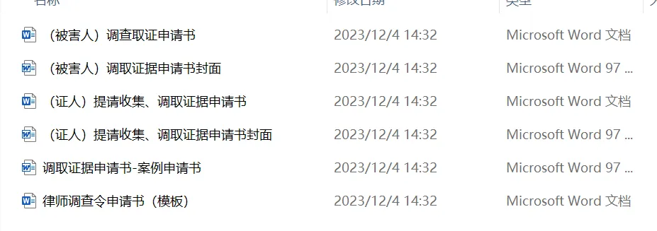 包含:庭申请书模板 、调取证据保证及申请书模板 、非法证据排除申请书模板、代理委托授权书