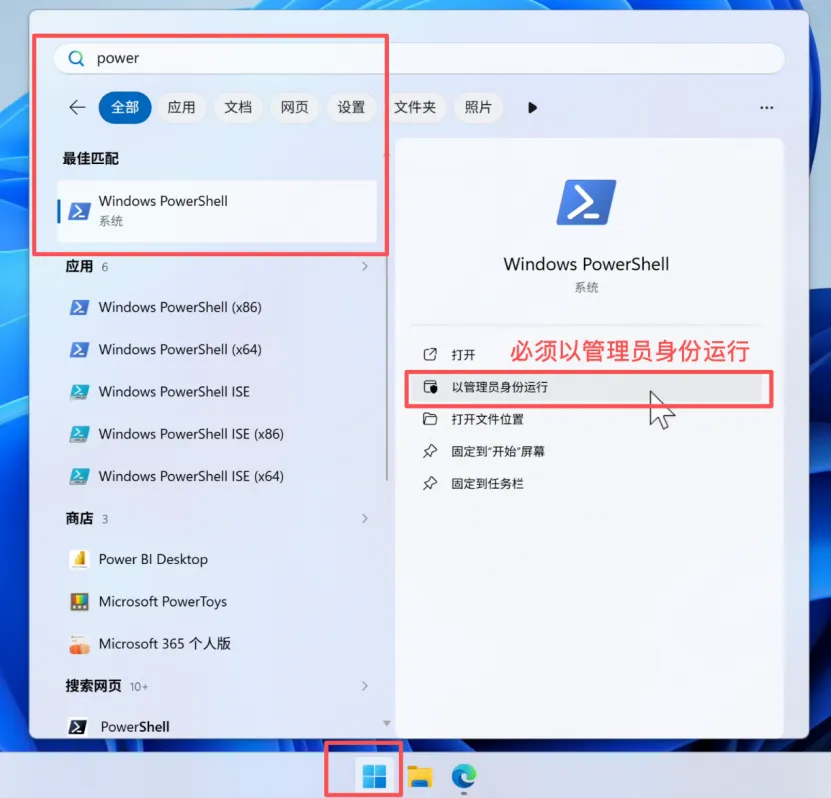 首先,以管理员身份打开PowerShell。PowerShell 是 Windows 自带的命令行工具,相当于 Mac / Linux 系统的终端。在电脑的搜索栏中输入"PowerShell",右键选择 以管理员身份运行iwr -useb https://openclaw.ai/install.ps1 | iex