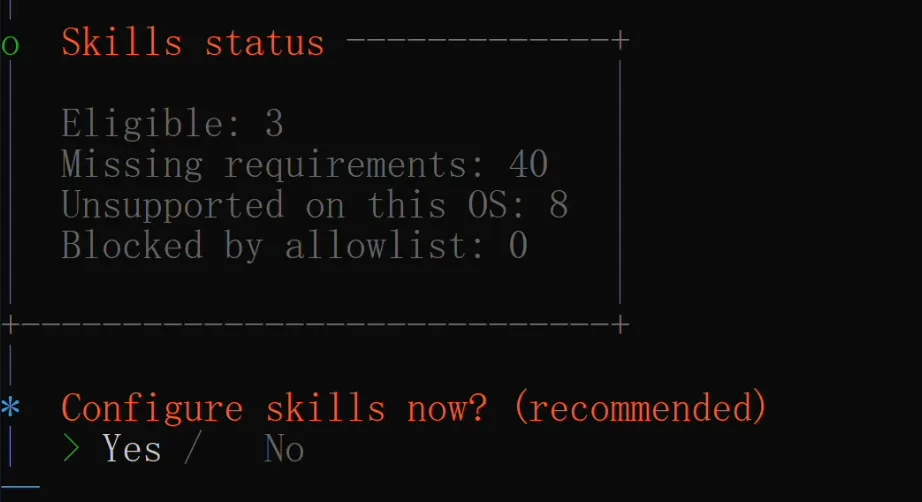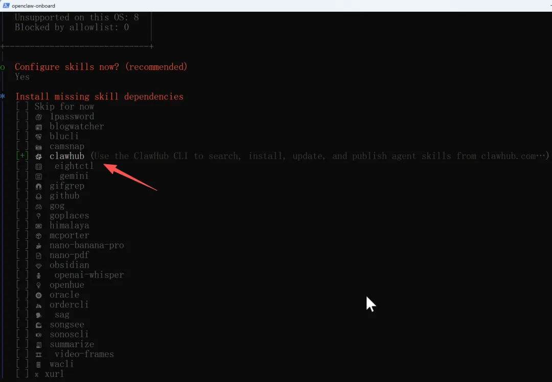 onboard 就是新手引导的意思,--install-daemon 是指 “顺便把后台服务也装上”,让 OpenClaw 在后台持续运行,关掉终端也不会停。执行后,会进入一个交互式引导程序,一步步带你完成配置。这里提醒一下,OpenClaw 是一个能操作你电脑的 AI 工具,理论上它可以执行任何终端命令,包括删除文件之类的敏感操作。所以建议有条件的话在虚拟机或备用机里玩耍,避免误操作影响到重要数据。引导程序会问你选择 Quickstart(快速开始)还是 Manual(人工)。建议新手直接选 Quickstart,它会帮你用默认配置快速搞定,人工模式适合有一定养虾经验的同学。之后选择Custom Provider 来配置中转站URL和SK引导程序会问你要不要连接 Telegram、WhatsApp、Discord、飞书等聊天平台,更方便地跟龙虾对话。建议直接跳过,我们先用网页界面聊天就好,后面手动接入 QQ 其实更方便。接下来还会问你要不要配置搜索服务提供者(比如 Brave Search),也建议先跳过,这些都需要额外申请 API Key,后面有需要再配:Skills 是给 AI 装的能力扩展包。OpenClaw 本身只是一个框架,装了 Skills 之后 AI 才能解锁各种具体的能力,比如搜索网页、操作浏览器、制作 PPT 等。然后引导程序会列出一些推荐的技能包,这里建议至少添加ClawHub这一个。ClawHub 是 OpenClaw 的官方技能市场,装了它之后,你的小龙虾就可以随时搜索和安装社区里上千个技能包,快速扩展自己的能力,非常方便。其他的技能按需选择即可。选择完技能后,还要选择安装技能的工具,用 npm 就行:之后还会询问一些额外服务的配置,比如是否要配置 AI 生图大模型等,新手直接无脑全部选 No:接下来会自动安装并启动 OpenClaw 的 Gateway 网关服务。你可以把网关理解成 OpenClaw 的总调度中心,它负责接收你从各个渠道(网页、QQ、飞书等)发来的消息,分配给 AI 处理,再把结果返回给你。这时候 Windows 可能会弹出防火墙提示,问你是否允许公共网络和专用网络访问,一定要点允许!否则网关服务无法正常工作。启动成功后,引导程序会问你是在终端界面(TUI)还是网页浏览器中使用 OpenClaw。TUI 就是直接在命令行里跟 AI 聊天,适合喜欢敲命令、有一定编程基础的同学。新手当然选 Web UI 网页中使用:选择之后,浏览器会自动打开 OpenClaw 的网页控制面板。恭喜,你的龙虾 1 号准备就绪!先跟它打个招呼吧,问问它是谁。它还会主动引导你通过对话来设置身份、职责等个性化信息:OpenClaw 内置了很多工具,比如文件读写、终端命令执行、网页搜索等。试试让它帮你读取电脑上的文件,比如查看下载目录里有什么: