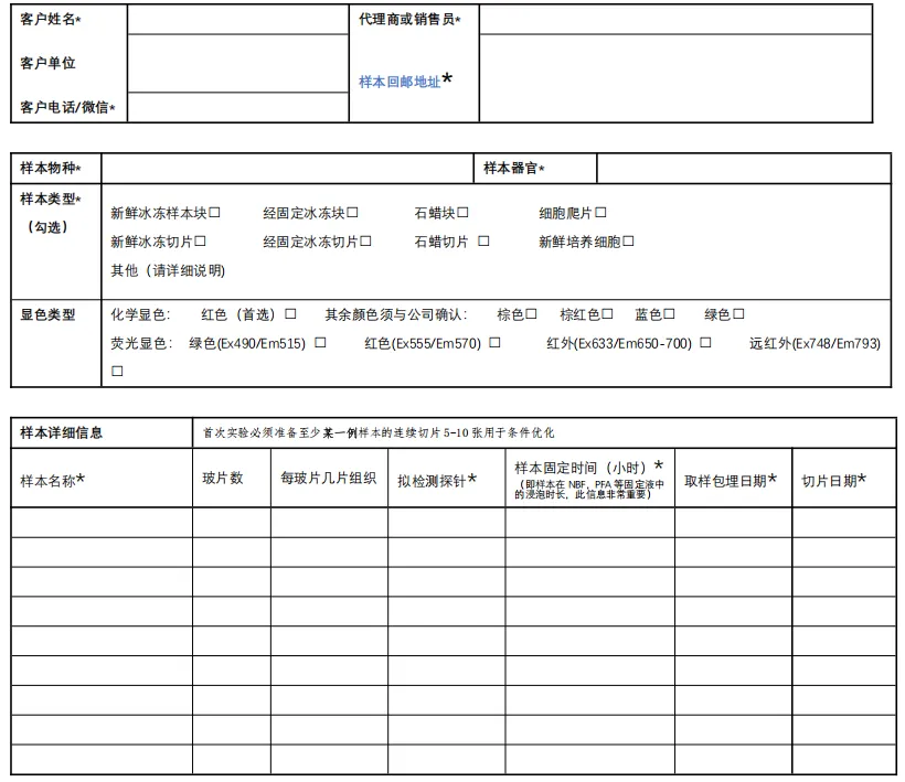 *为必填项,如果无法正确提供,或会导致服务延迟/样本损坏/服务失败,服务商不会承担损失。