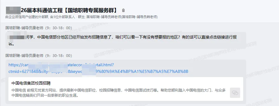 打破信息差,引导学生主动探索多元岗位,充分调动其求职积极性,拓宽职业发展路径。根据央国企岗位释放情况,给学生做合适岗位推送,助力学生求职之旅。学生点击国培职聘链接后,直接跳转至企业官方的网申系统页面,无需再次搜索和注册,体验流畅。