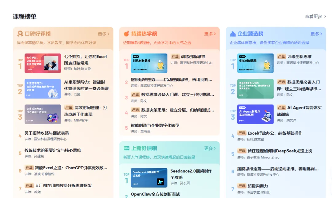 ▲匠心学院平台课程榜单(点击图片放大查看)。