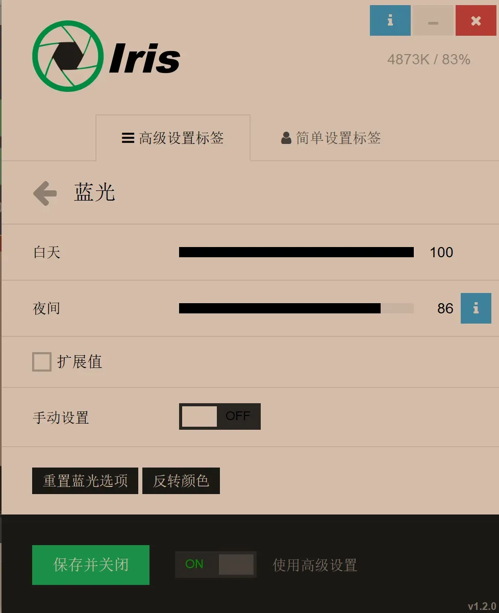 Iris不一样,它是真的一款可以直接干预蓝光辐射量的软件。它是直接减少蓝光辐射量,从而减少辐射对眼睛的伤害。
