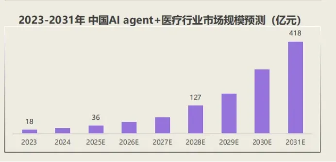 智药咨询研究院预计,随着AI Agent在医疗领域渗透率的持续提升,到2031年,中国相关市场规模有望达到418亿元。