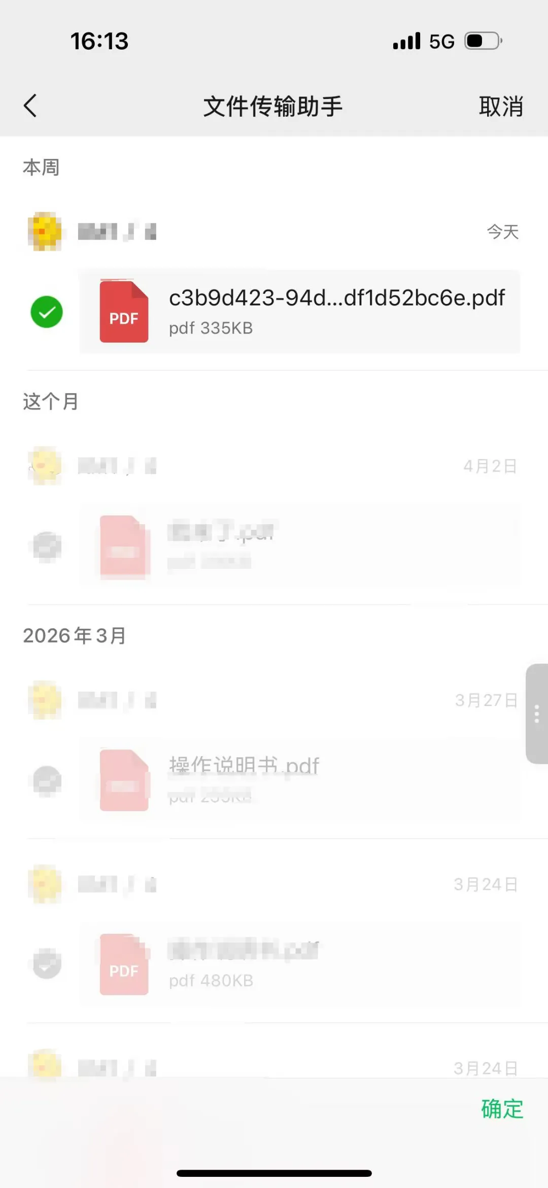 然后,我们可以在我们的微信聊天记录里面,找到我们的PDF文件,当然,我们需要先把文件发送到微信。作为我们要解密的PDF文件。