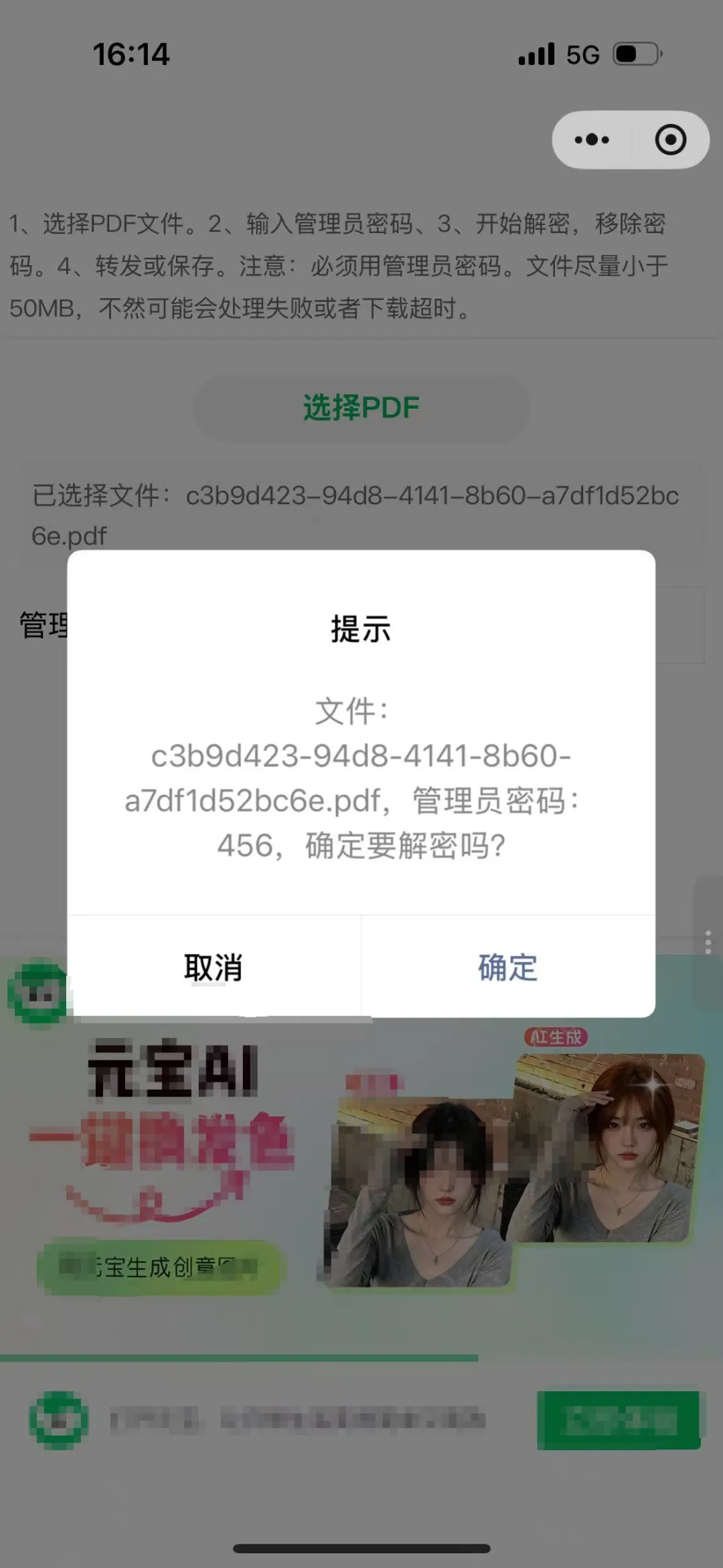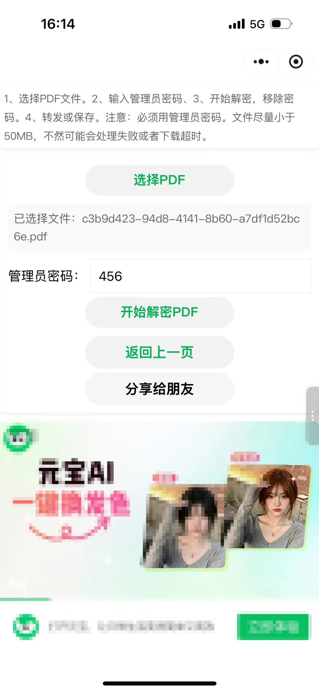 当输入了正确的管理员密码后,就能生成一个新的PDF文件了。