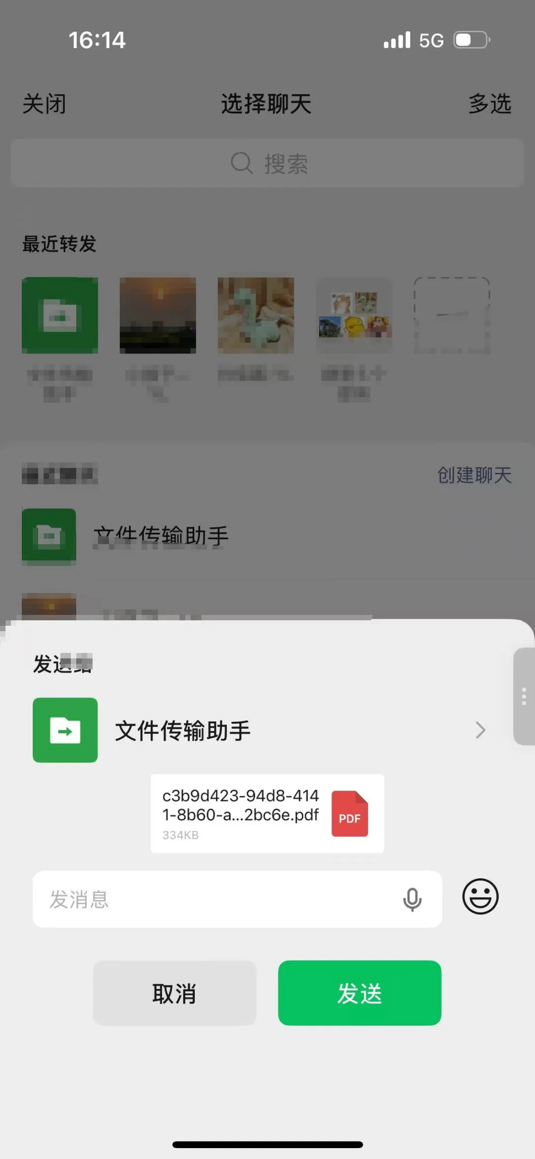 然后,就可以把这个旋转后的新文档转发给某个聊天了,比如发给文件传输助手。