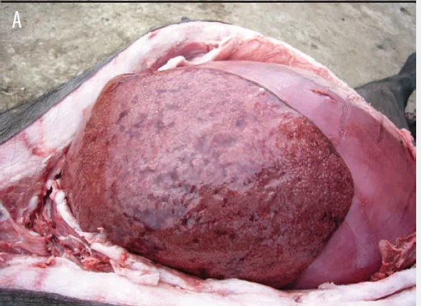 • 案例2:西班牙户外散养伊比利亚猪群,诺维氏梭菌感染导致母猪死亡(来源:Clostridium novyi infection causing sow mortality in an Iberian pig herd, Alfredo Garcia, DVM, PhD et al 2009)