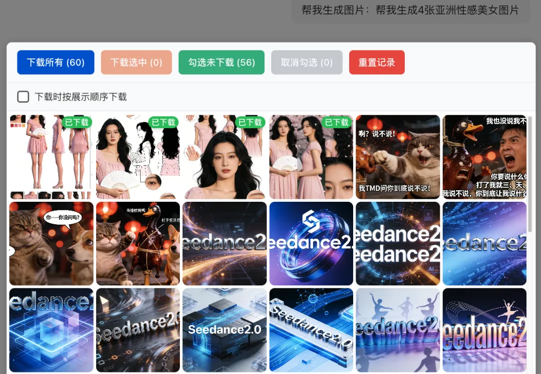 前段时间给大家分享过一个豆包生成图片图片下载的方法,但还是有小伙伴反映有点麻烦,并且也只能单次下载一张图片!