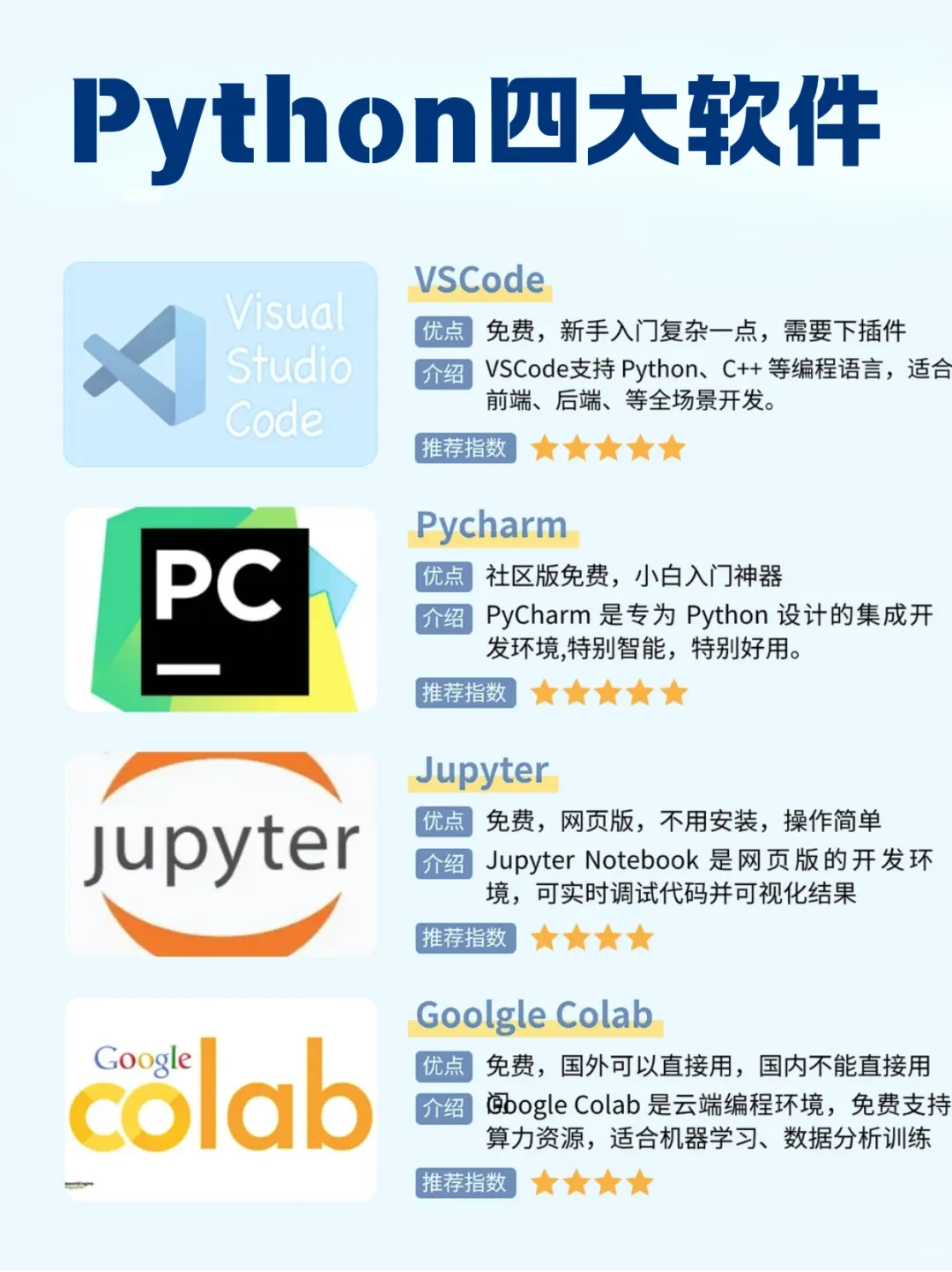 别慌!新手学 Python,选对编辑器 = 成功了一半。今天就把新手最常用的 4 款 Python 开发工具,一次性给你讲透!优缺点、适用场景、推荐指数全给你扒明白,看完直接照着选,再也不用瞎纠结。