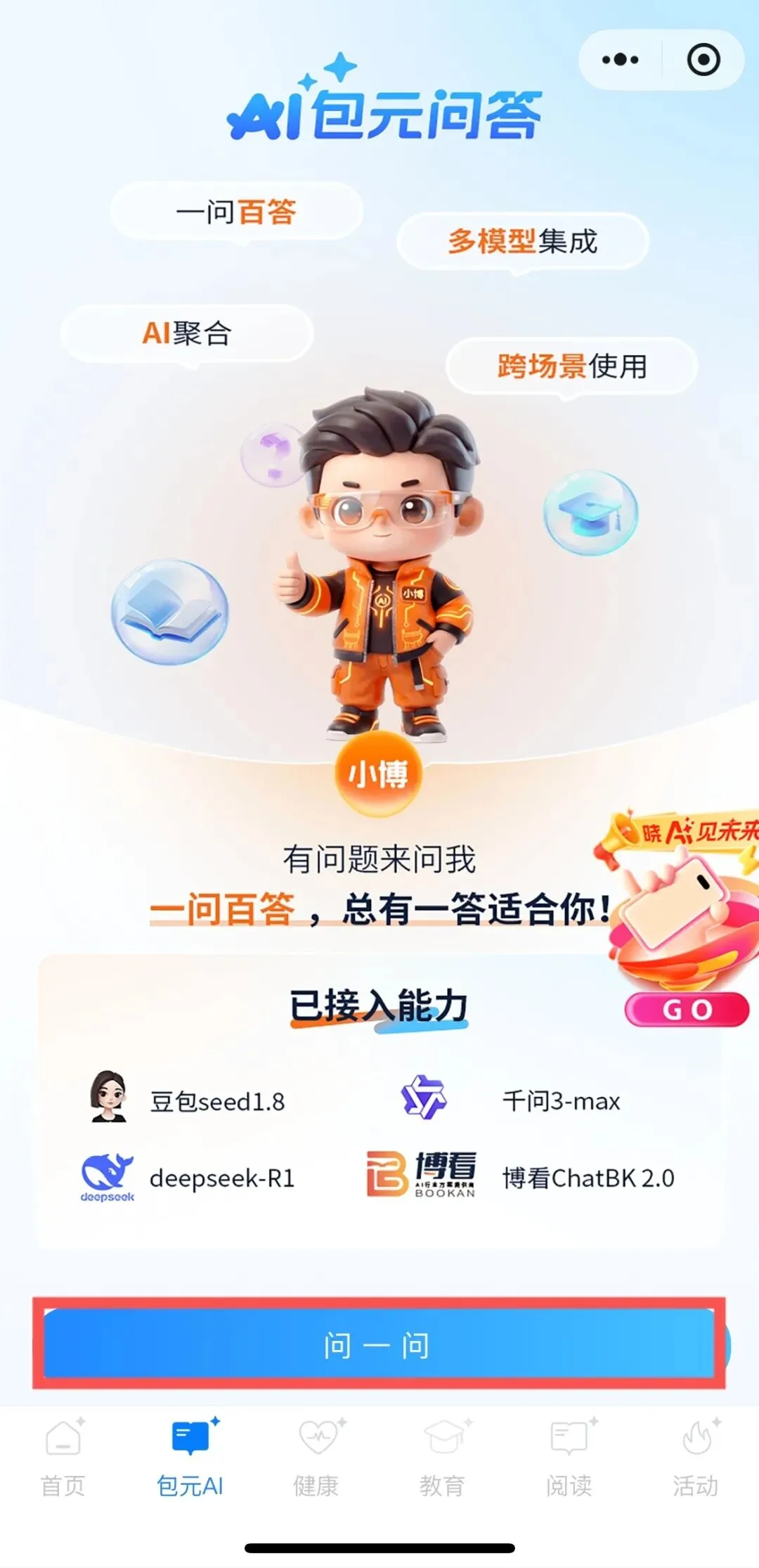 集成健康、亲子教育、包元问答等AI智能体,覆盖工作生活多维度需求。