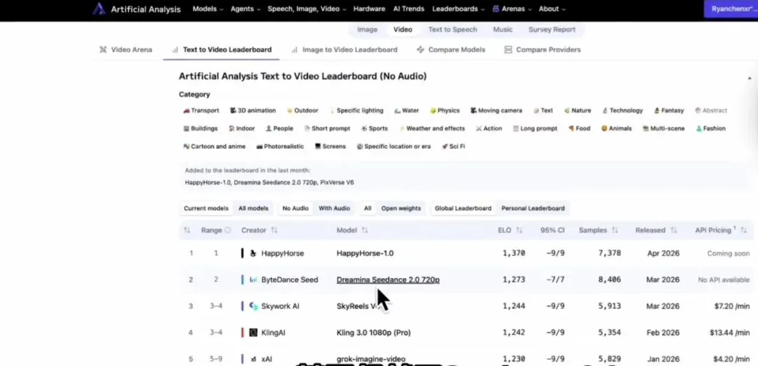 Artificial analysis 这个平台为什么大家这么在意呢,你把它想象成视频圈的大众评审,加奥运裁判加实时票房榜捏在一起,他最狠的地方是把厂牌先遮住,让用户盲选两段视频,谁更自然,谁更稳、谁更懂提示词,大家直接投票,所以这个榜单有个特别残酷的地方,品牌滤镜会被拔掉,你平时吹得再响,到了这儿都得脱稿考试。
