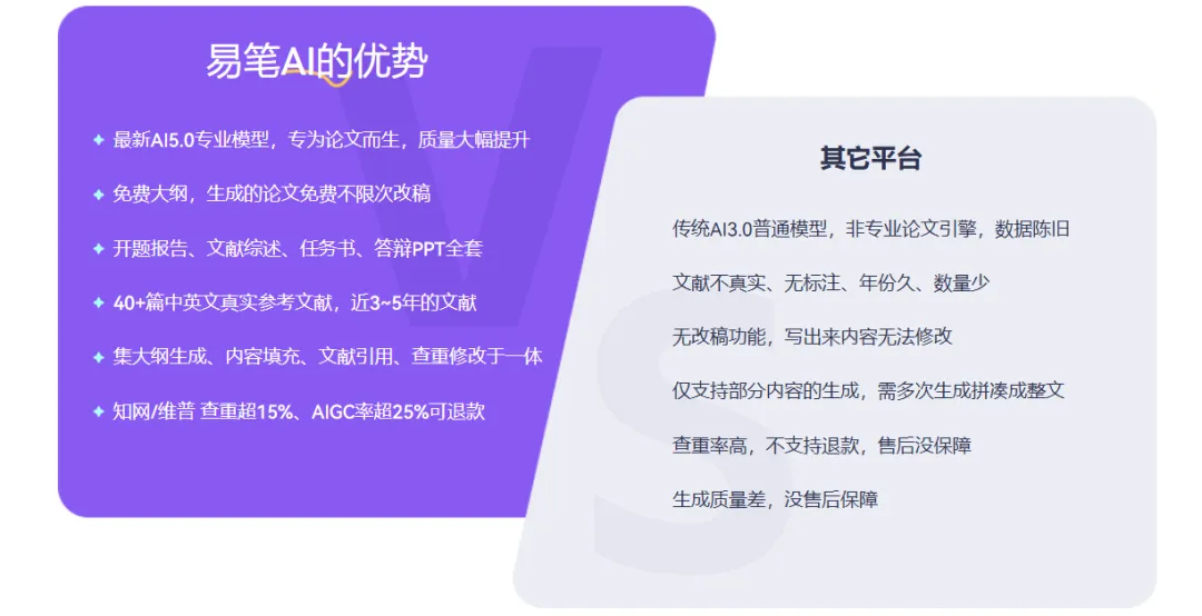 易笔AI是目前市面上少有的搭载的AI论文写作助手,真正解决了AI写论文过程中参考文献虚假、逻辑断层等核心痛点,不仅能一键生成3-6级深度大纲,还能实时抓取知网中科院真实文献,无需你切换多个插件,自带的降重技术,能将查重率和AIGC率稳稳控制在5%以内,运行极度稳定。比起那些层层收费、功能单一的工具,易笔AI才是真正懂学术写作、一键解决所有问题。