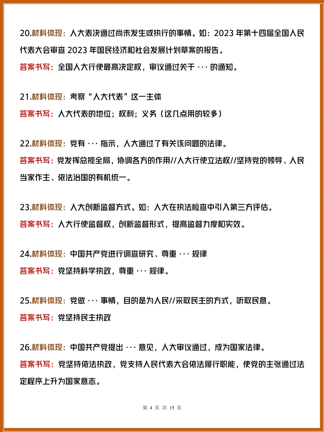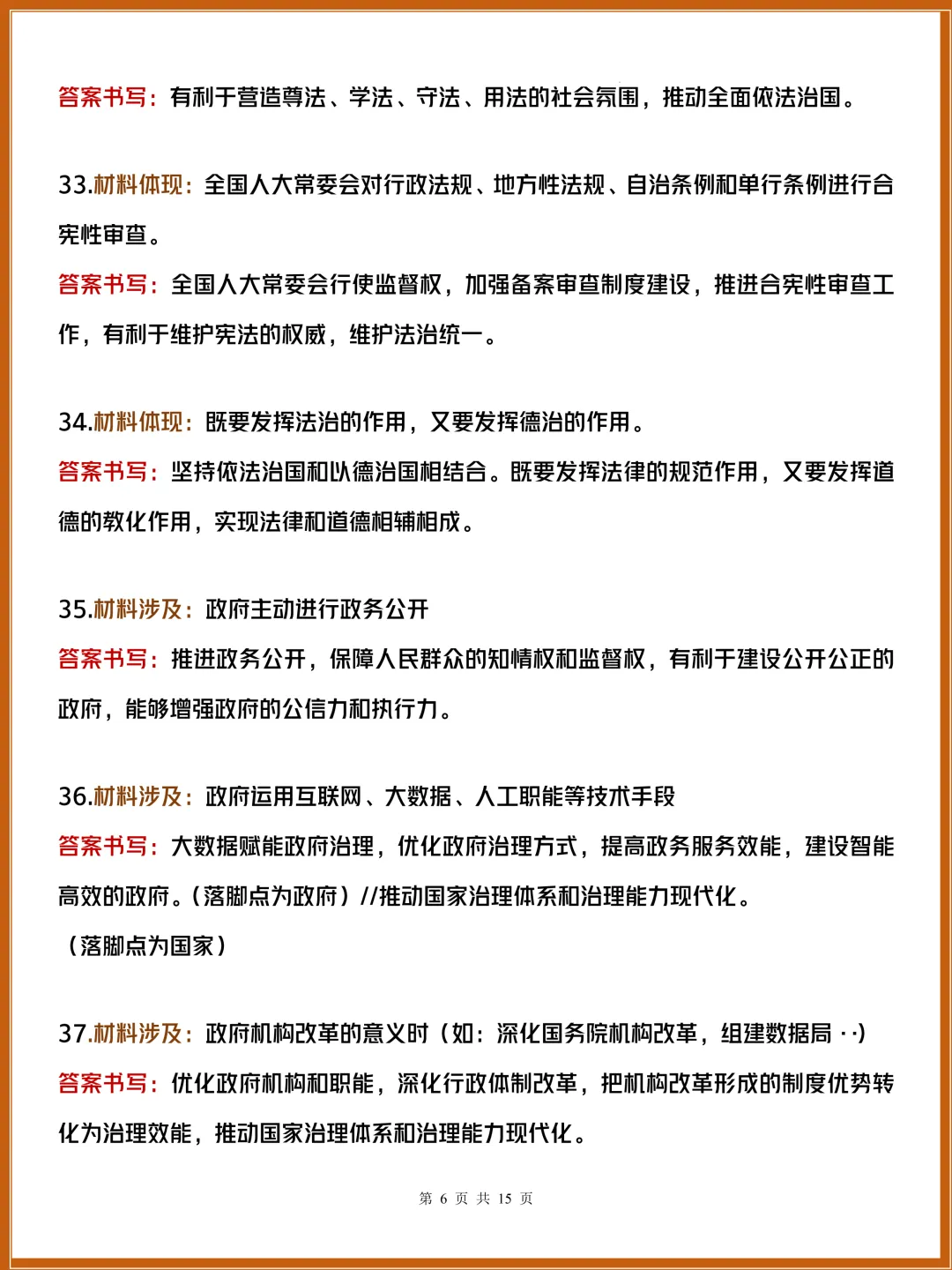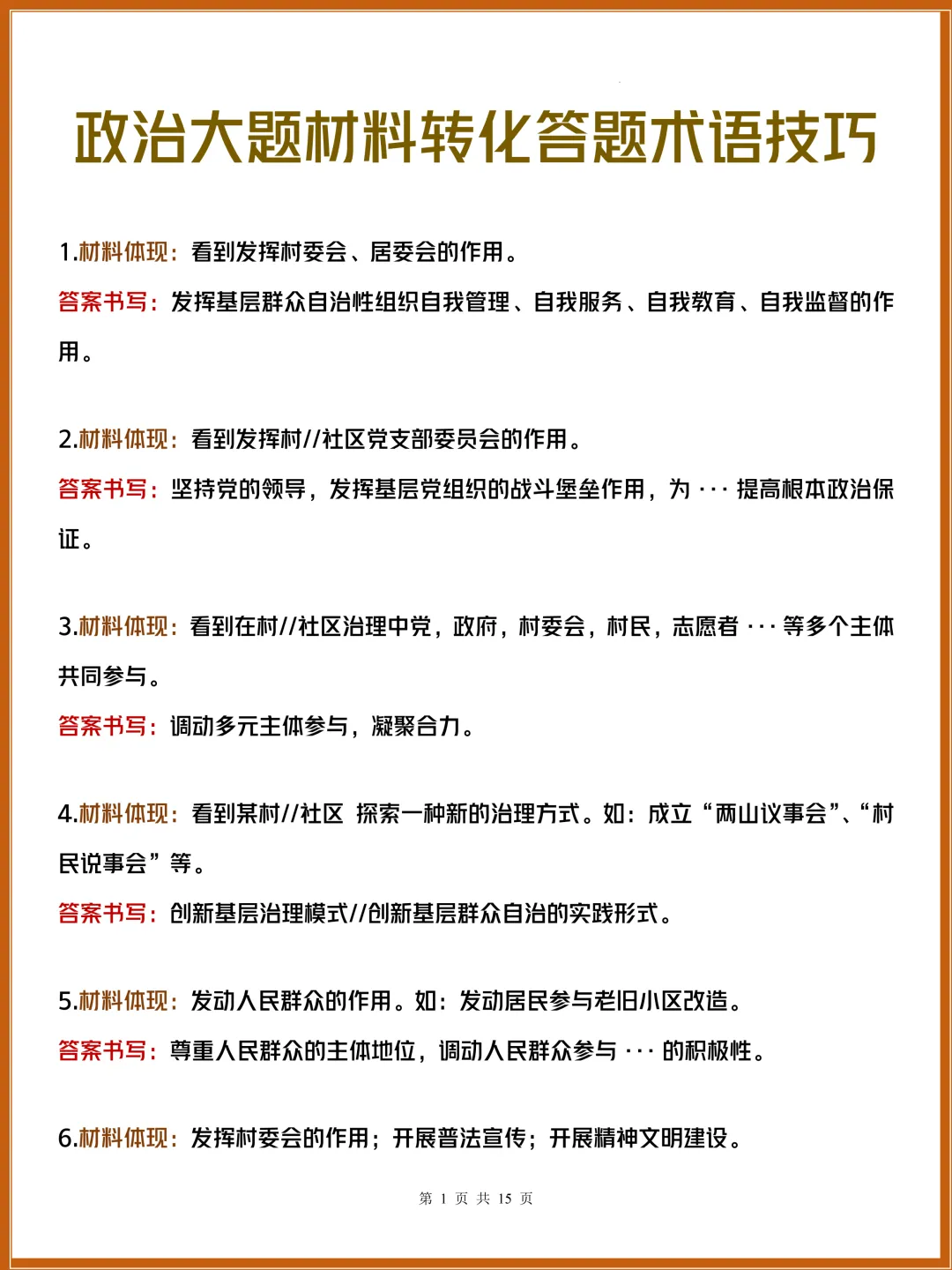 这份《政治大题材料转化答题技巧》精准拆解各类材料对应的规范表述,帮你告别口语化答题。掌握党、政府、人大等主体的答题逻辑,快速把材料转化为高分答案,30天速记搞定大题,轻松拿捏政治主观题!