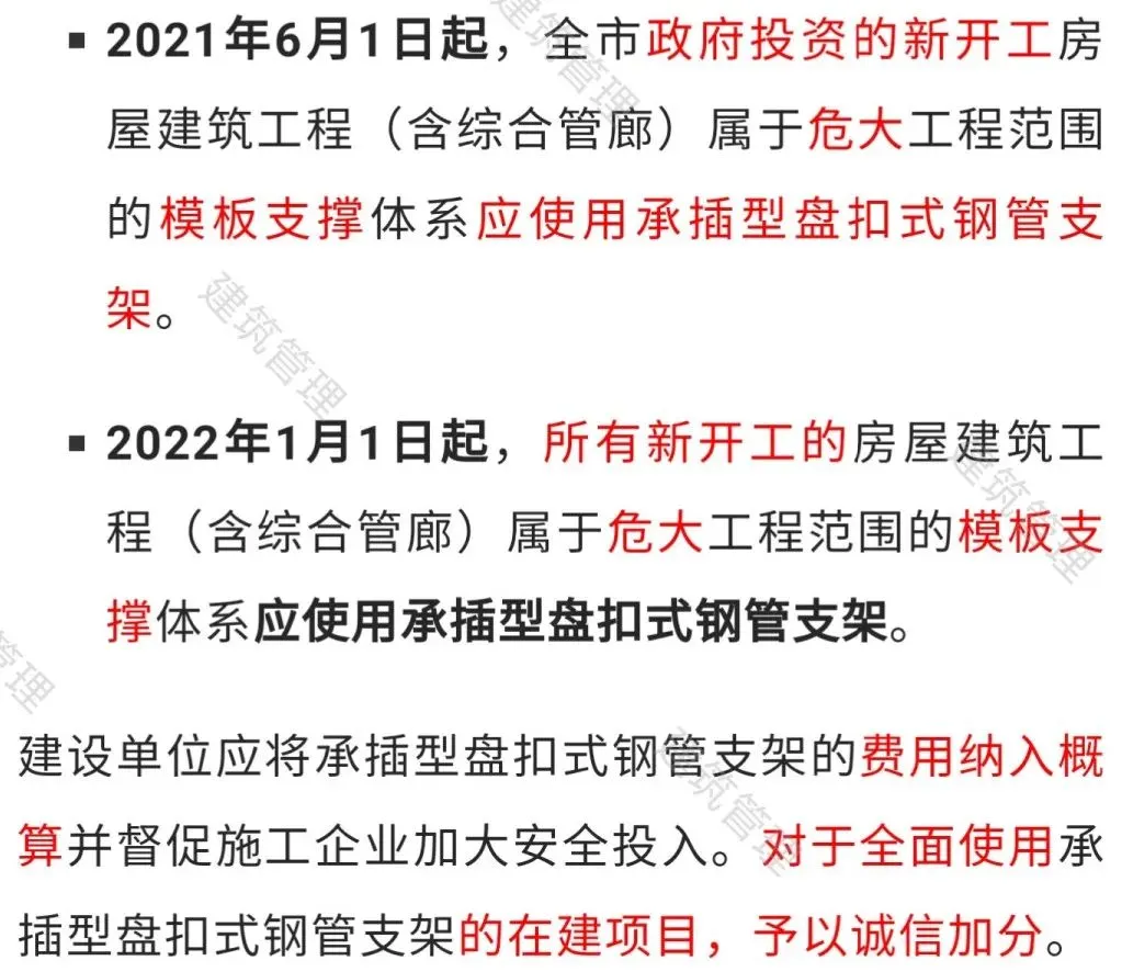 此外,徐州市《关于推行承插型盘扣式钢管支架的通知》( 徐住建发〔2021〕27号)文件也于2021年6月1日起正式施行。