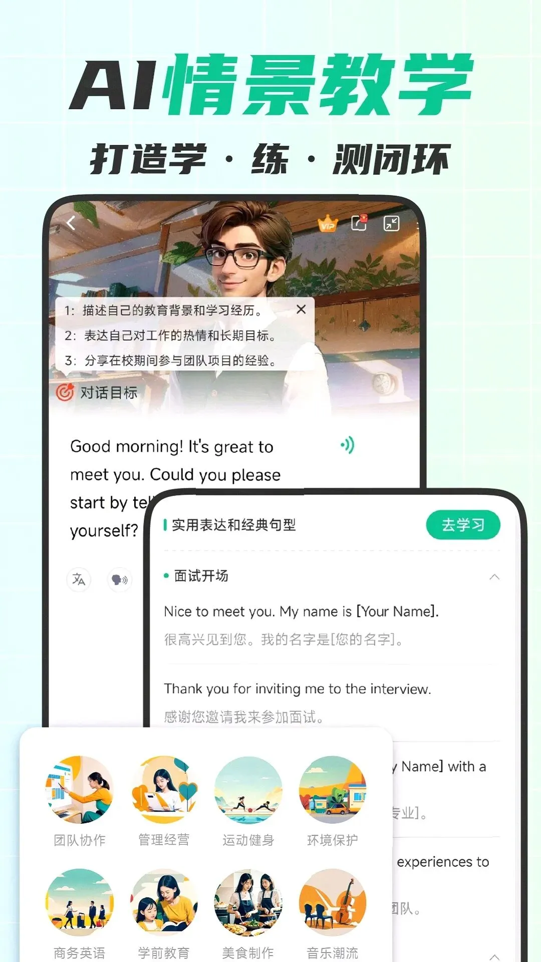 【痛点3:没人陪练没环境?】24小时AI外教,随时随地练口语