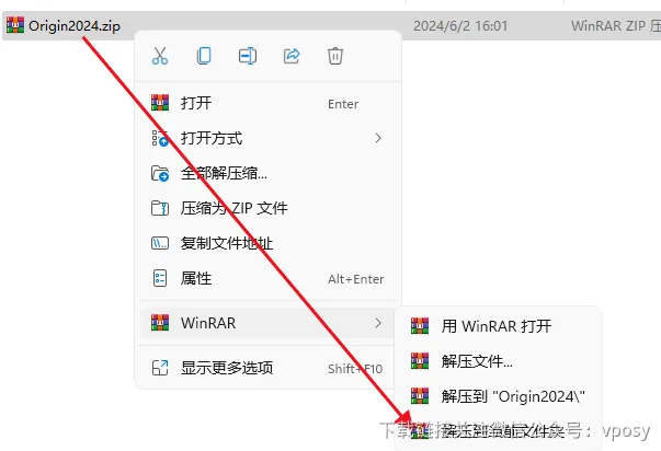 1.把资源从网盘下载到电脑上面,右键压缩包选择解压到当前文件夹。(不会从网盘下载的建议参考Vposy公众号文章:“如何下载打开资源”)。