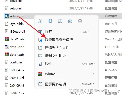 3.鼠标右击【Setup】选择【以管理员身份运行】。