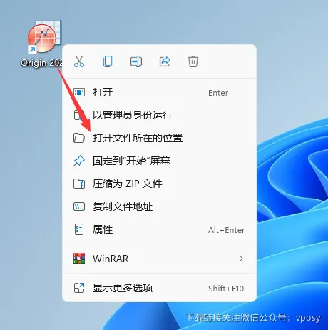 20.鼠标右击拖到桌面的【Origin2024】图标选择【打开文件所在的位置】。