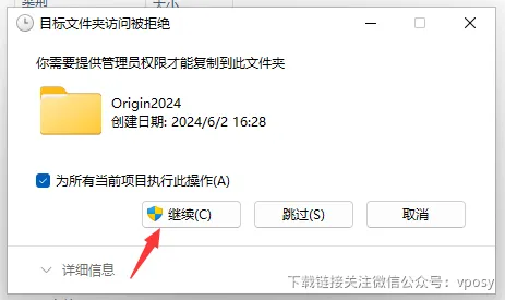 23.勾选为所有当前项目执行此操作,然后点击继续。