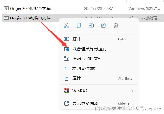 25.鼠标右击需要安装的语言类型(中文选中切换为中文,英文选中切换为英文)选择【以管理员身份运行】(运行完成后自动关闭)。