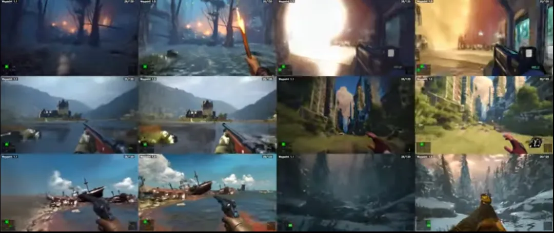 - 训练数据大幅增加:Waypoint‑1.5 的训练数据量是上一代的近 100 倍,提升了环境生成的连贯性和动作一致性。